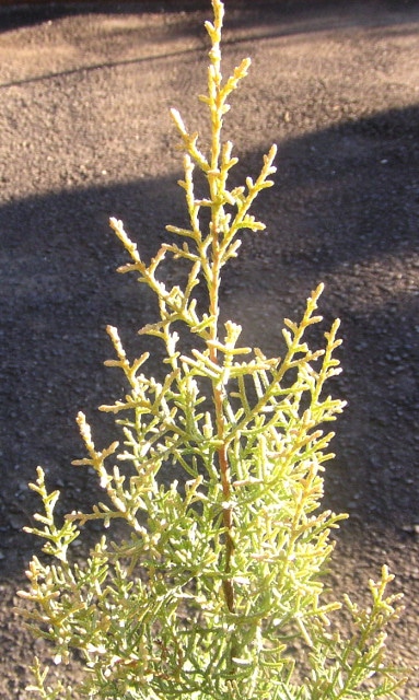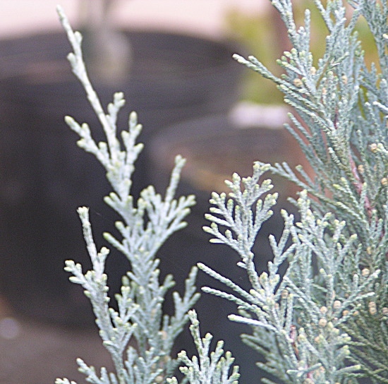 青色のコニファーは数あれど、空色を白くしたような、独特の葉色がとても美しい品種。