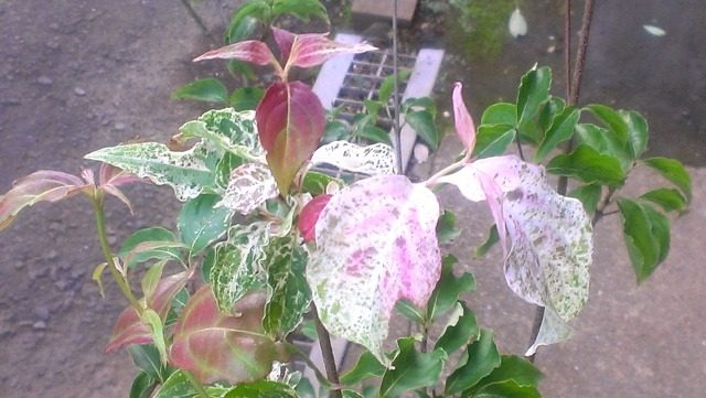 斑入りヤマボウシ ’七変化’(Cornus kousa 'Shichihenge')は夏前後に白色の掃き込み斑が入りますが、諸条件で様々に変わります。