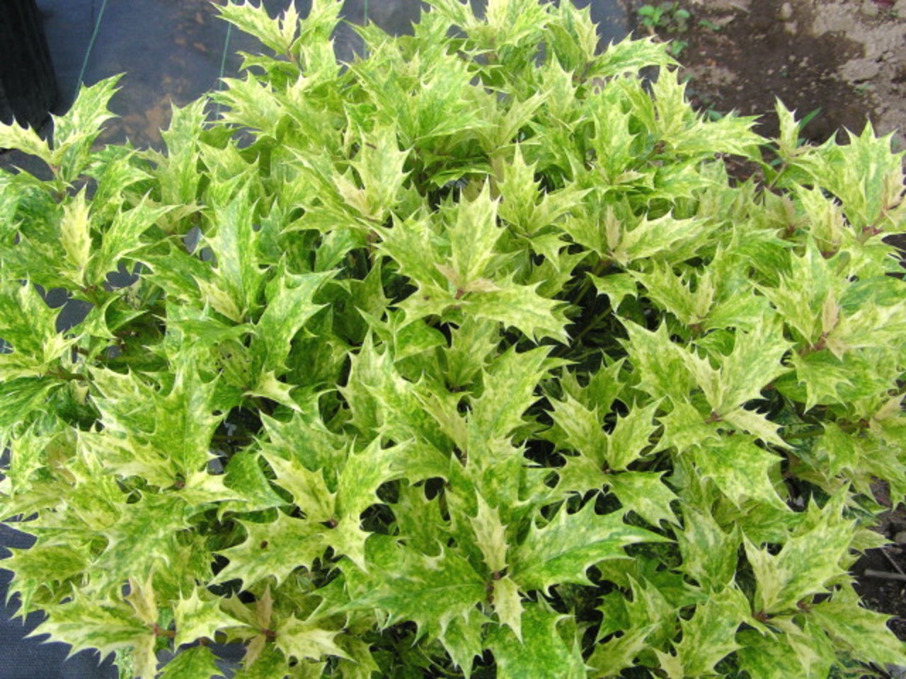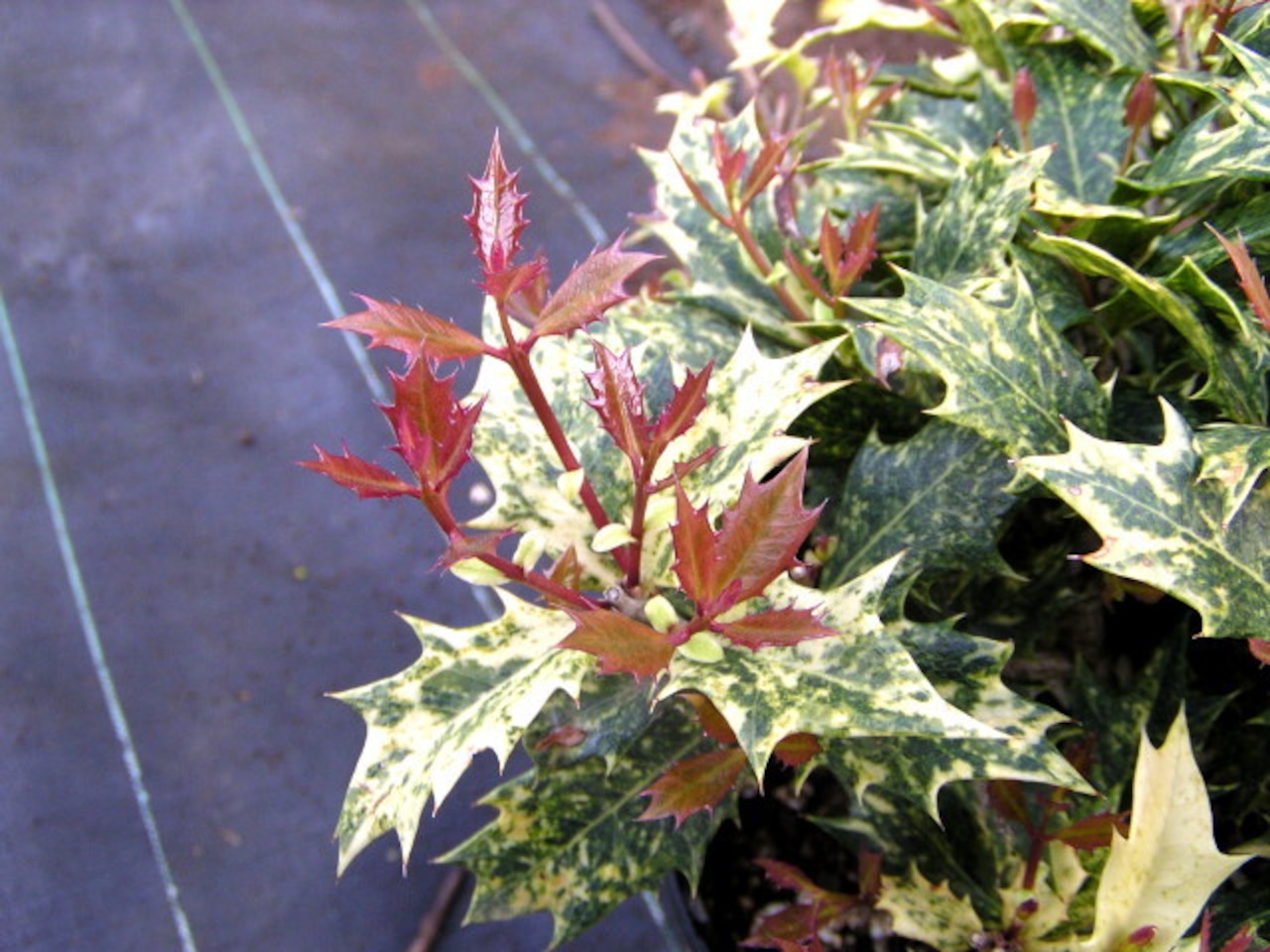 特徴的な鋸歯のあるヒイラギの斑入り品種で、その名の如く、様々な葉色を鑑賞出来ます。