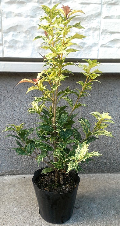 10.5cmポットの斑入りヒイラギ【五色柊(ゴシキヒイラギ)】です。